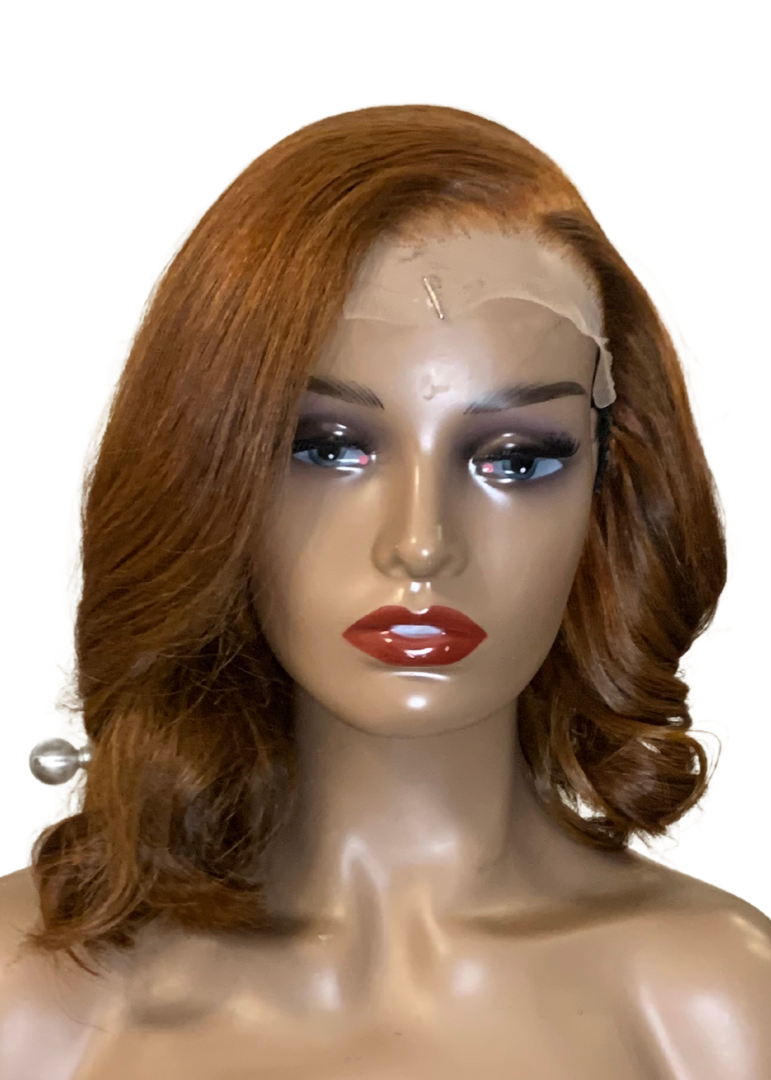 Type: glueless | Length: 16 inches | Color: copper | Part: side | Texture: body wave | Cut: layered bob | Closure: 5x5 HD or Transparent